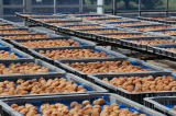 | この時期は梅(南高梅)の成熟期にあたり、いよいよ収穫の始まりです。 梅の香り漂う畑に入り、一粒一粒丁寧に収穫し青梅(南高梅)として出荷したり、樹の上で完熟するのをまって(自然落下するのを待ちます)収穫し粗塩のみを使用して紀州梅干として漬け込みを行います。だから完熟紀州梅干しができあがるのです。 |